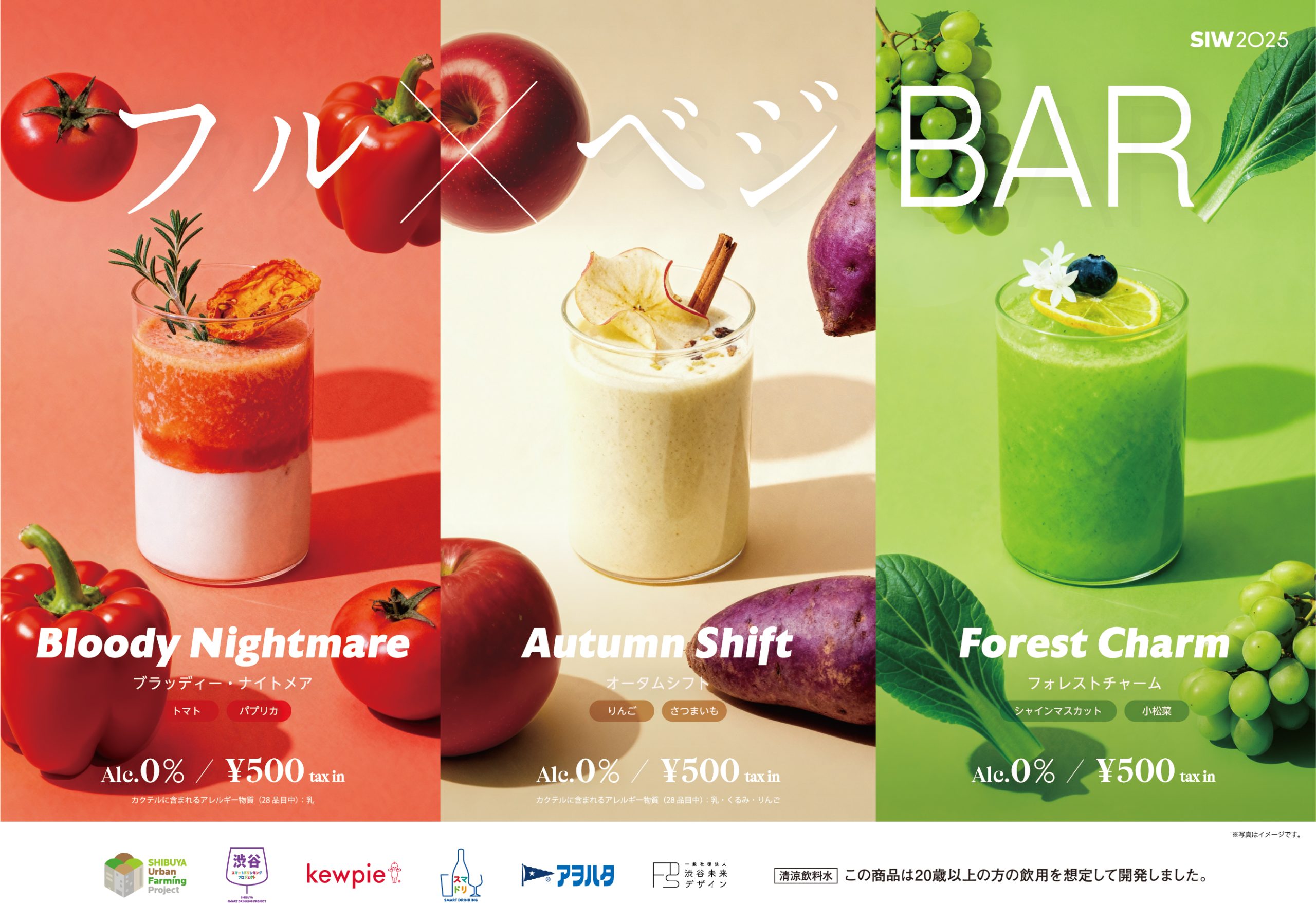 SIW2025では、年間を通じて社会課題解決に取り組む産官学民連携の大学生によるプレゼンテーションや、SHIBUYA Urban Farming Projectと共同開発した”野菜を新感覚で楽しむ”オリジナルカクテルの販売を行います。