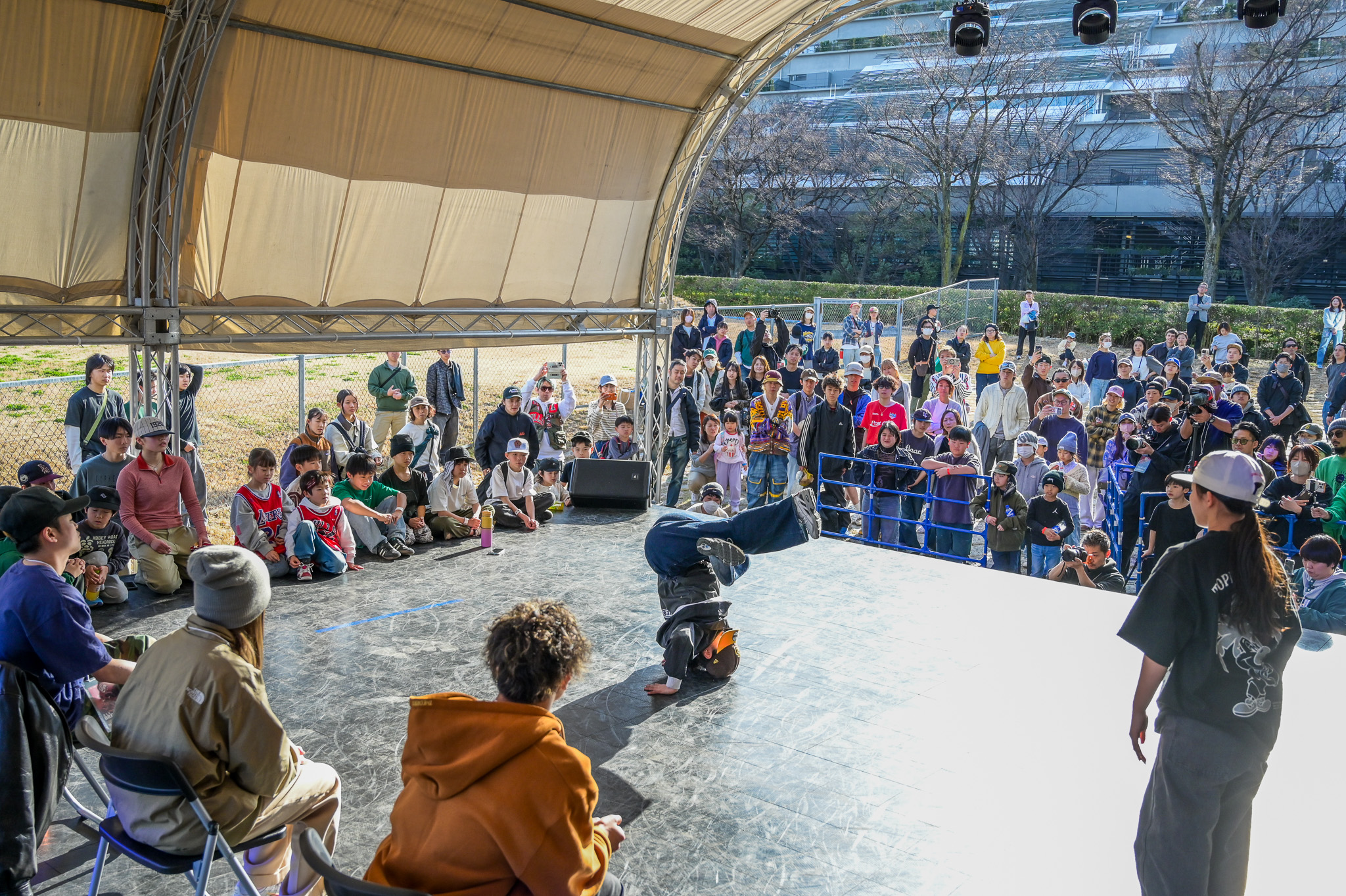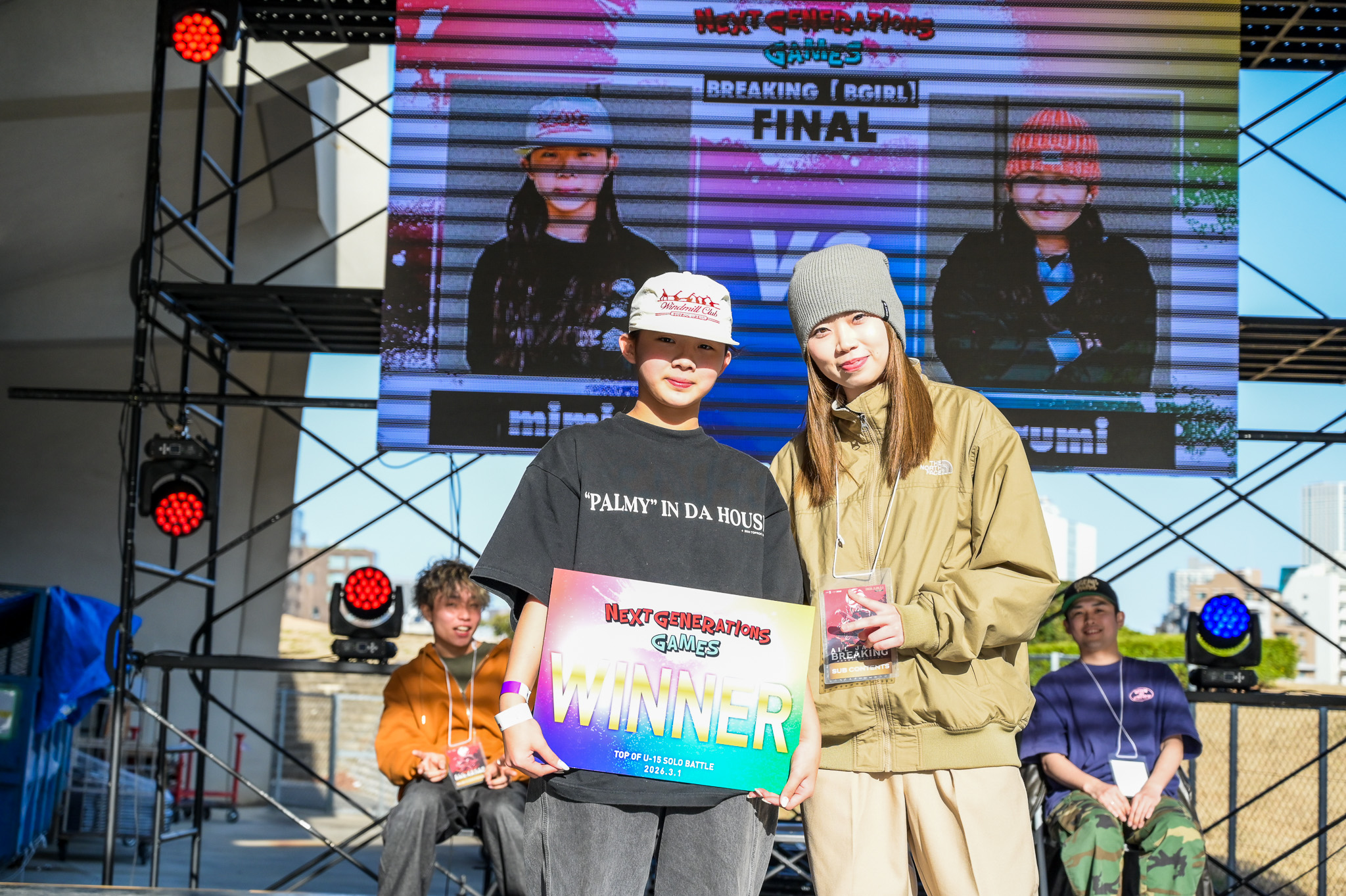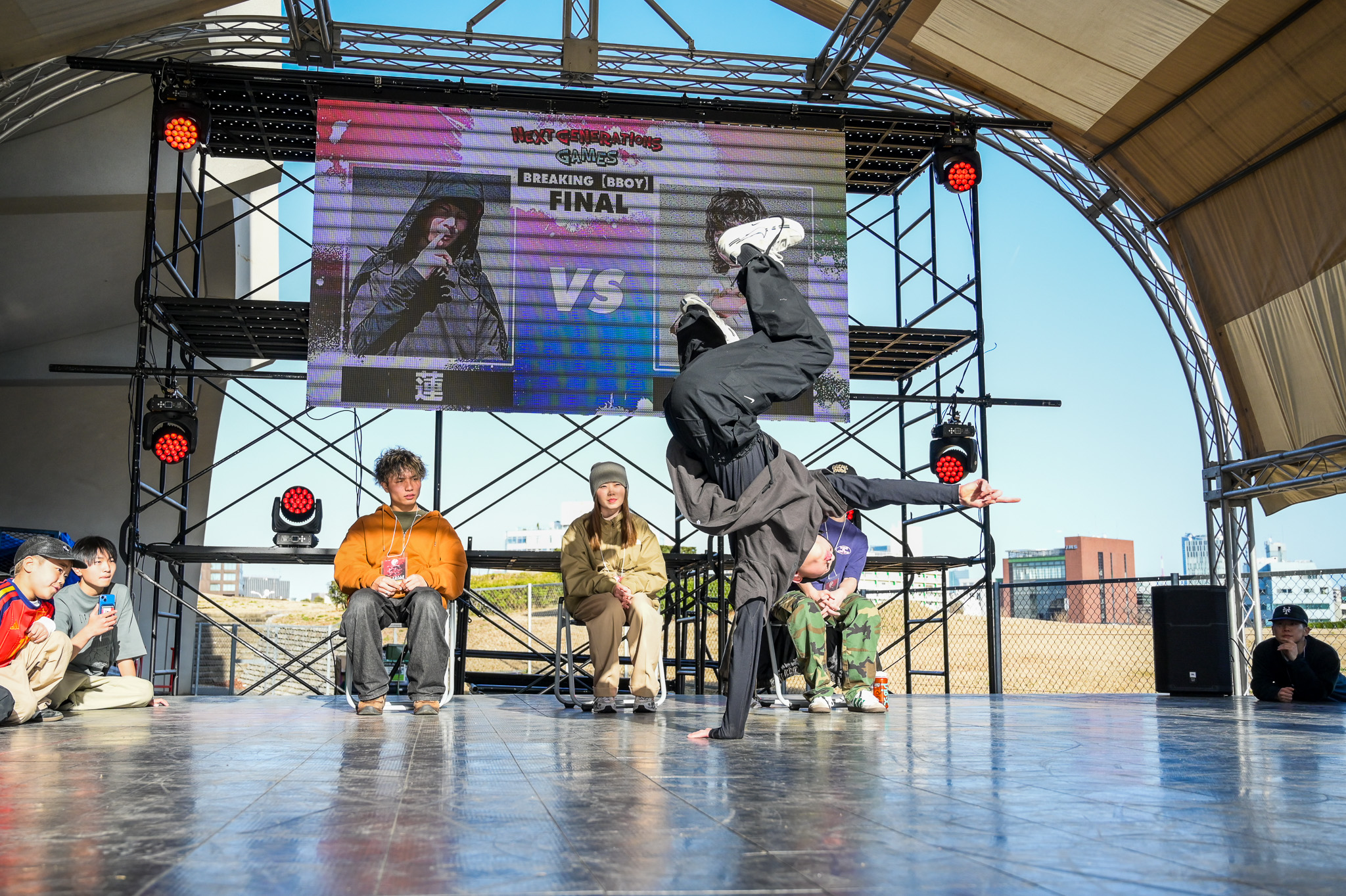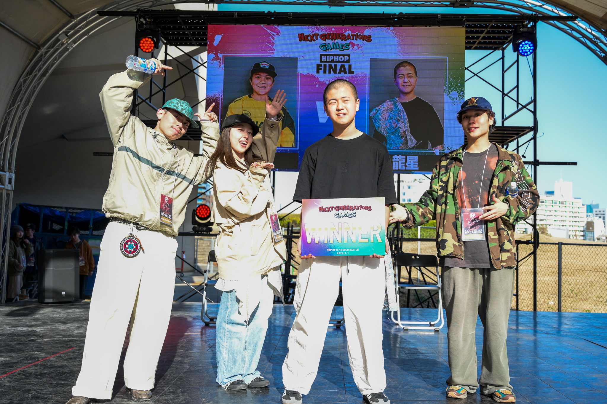 決勝は同大会会場である国立代々木競技場第二体育館の屋外特設ステージにて行われ、全競技のファイナリストに加え、予選で惜しくも敗退した選手たちも会場に集結。観客とともに熱気に包まれる中、各競技の頂点を決める最終決戦が行われました。