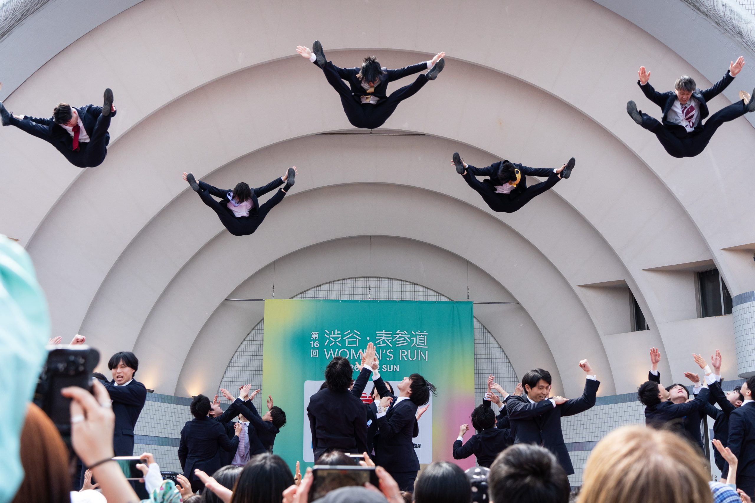 「いい汗、渋谷。応援サポーター」Cheer Re-Man’sによる応援パフォーマンスも行われ、スタート前の会場を盛り上げました。ブースにも立ち寄った応援サポーターは、参加者との交流を通じて会場全体の熱気を高めました。