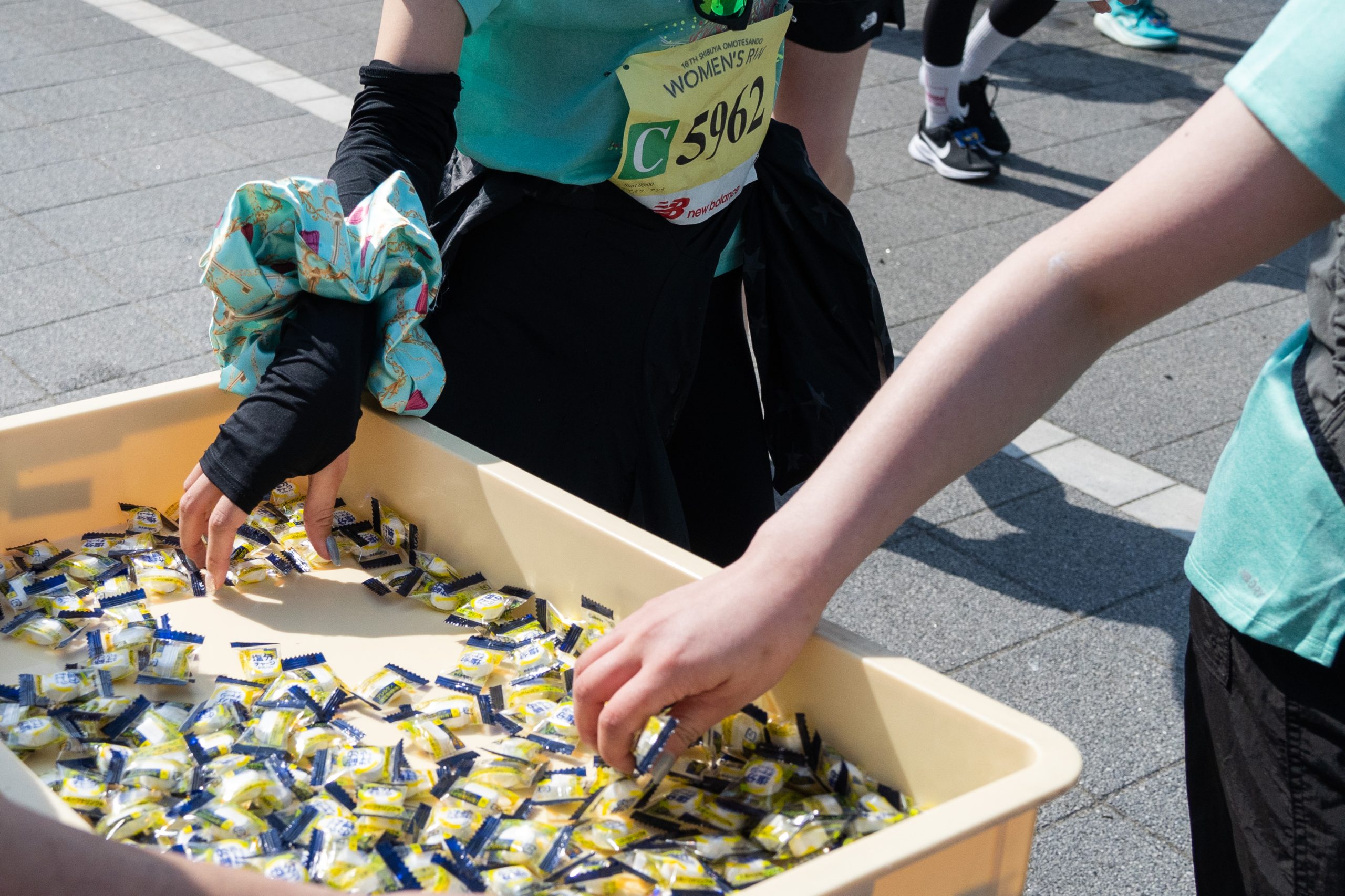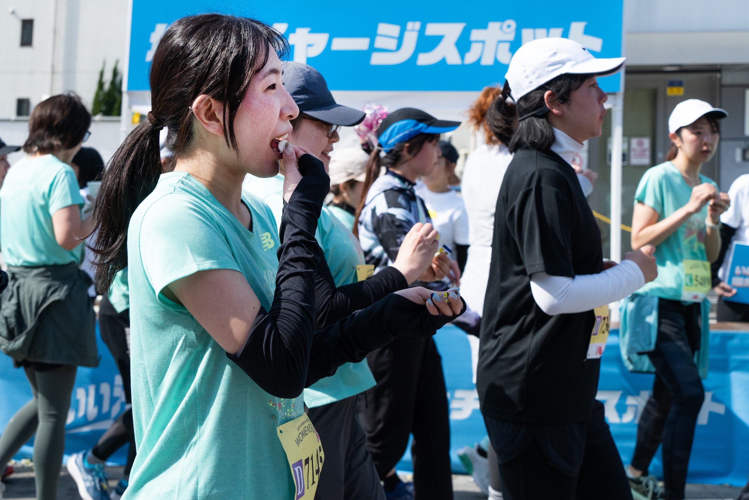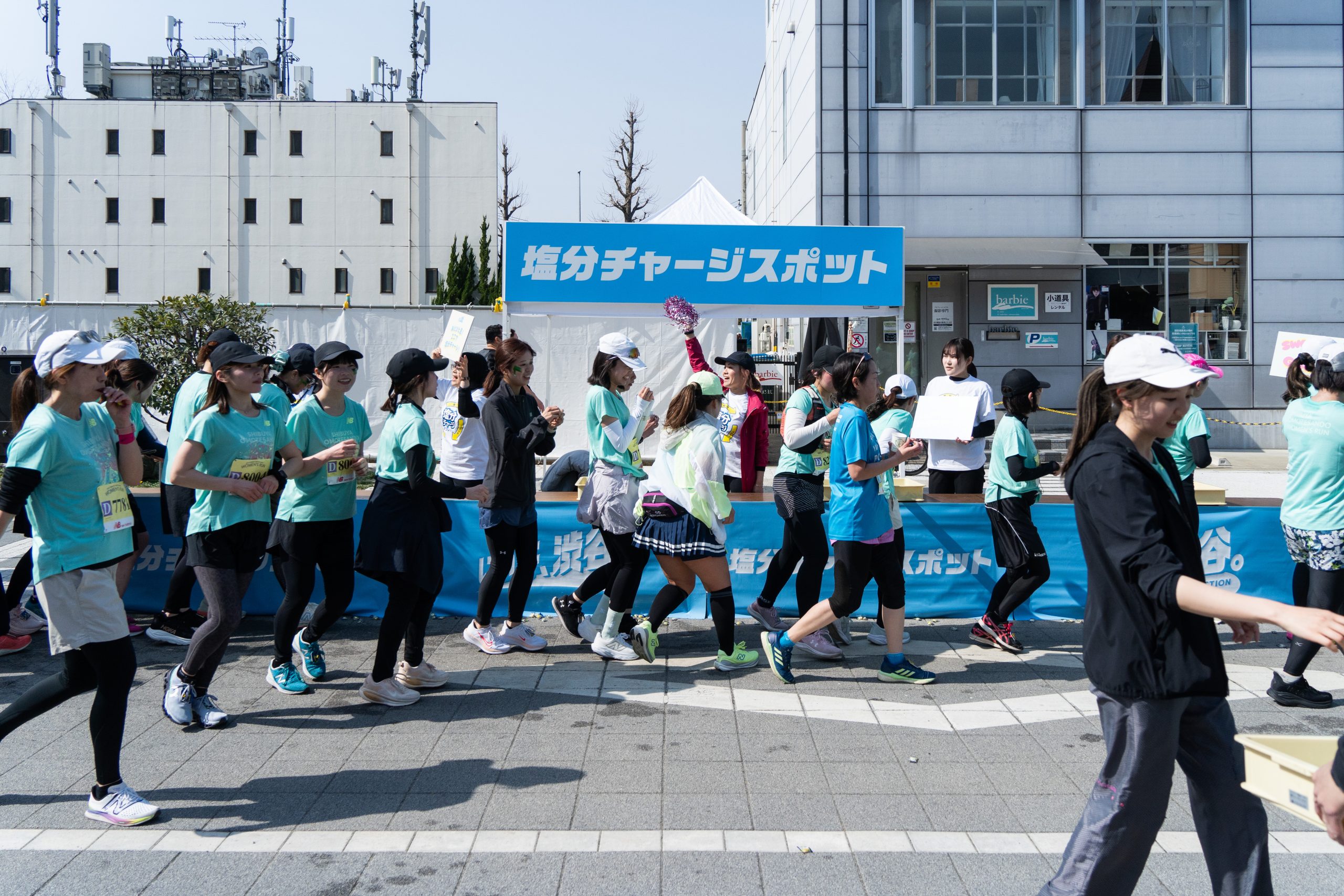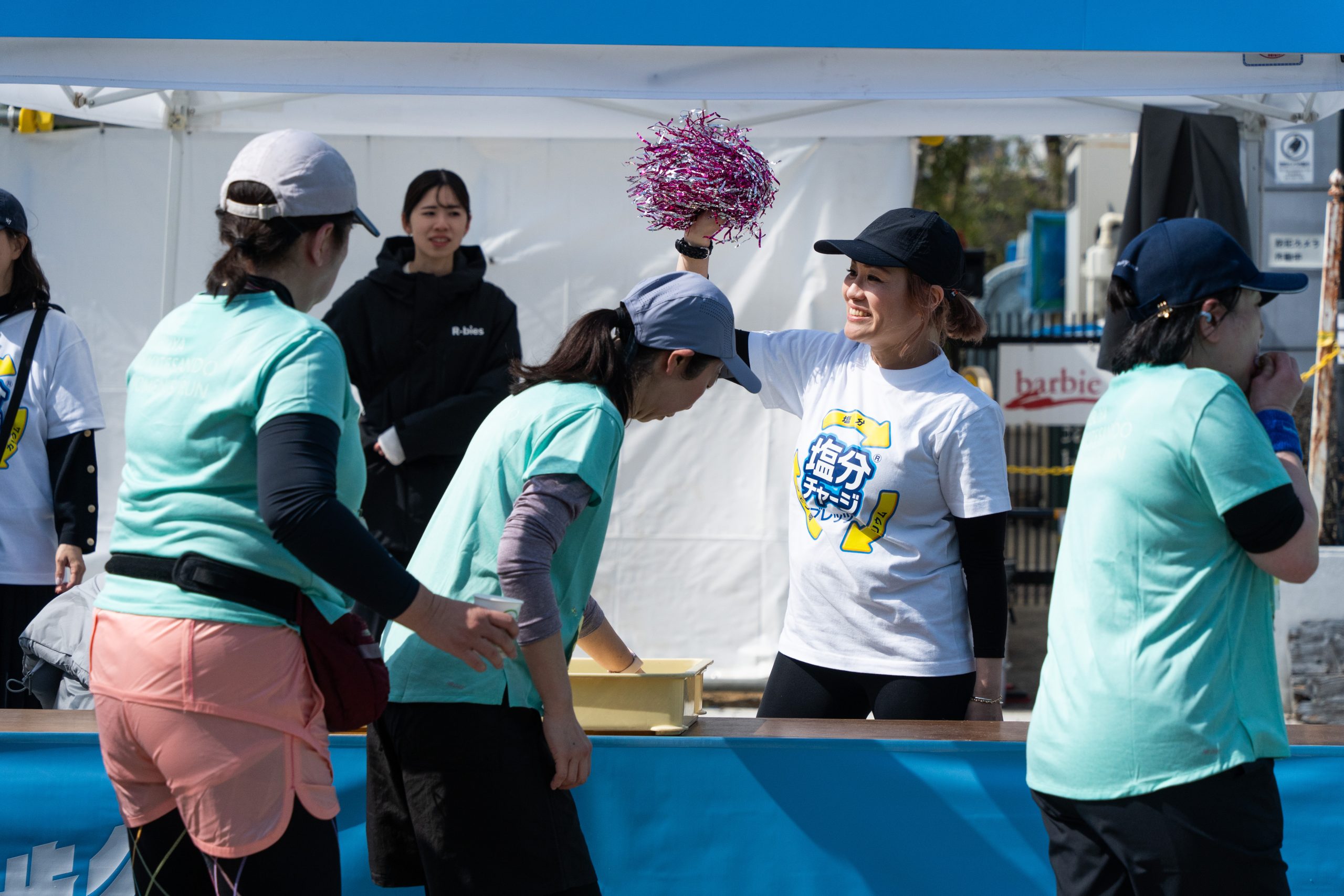 ランナーがスタートすると、コース内には給塩分所として「塩分チャージスポット」が設置され、走りながら塩分補給を行うことができました。自分のペースで走り続けながらも、体調管理がしっかりサポートされました。