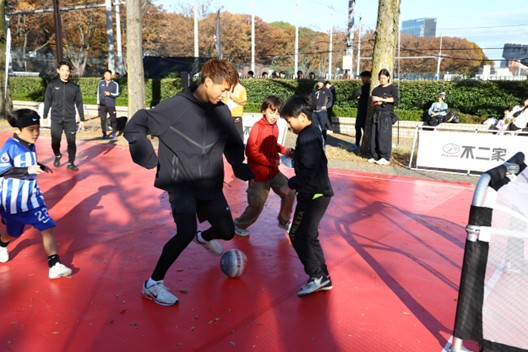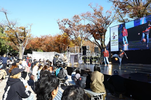 普段は歩道として使われる空間が、この日限りの特設コートへと変わり、3x3FOOTBALLやフリースタイルフットボールなど、多彩なコンテンツでにぎわいを見せました。