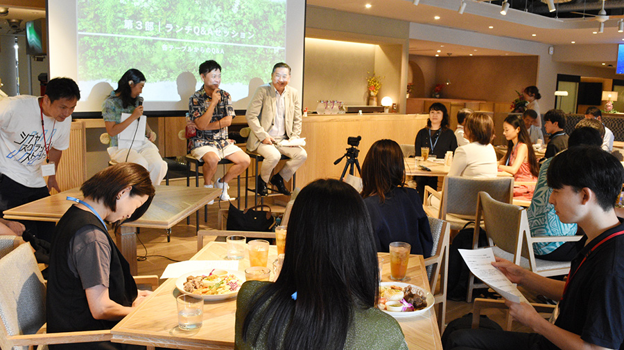 トークセッションの後には、会場から登壇者への質問や感想も寄せられ、活発なやり取りが行われました。参加者の皆さまには、Tiki’s Tokyo(ロイヤルコントラクトサービス)特製のランチプレートを楽しんでいただきながら、近くの席の方との交流も楽しんでいただきました。